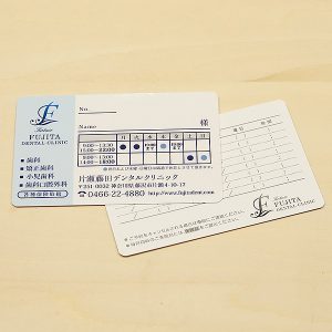 ●紙診察券: 表面にPPフィルムを貼り光沢が出て、丈夫にする事もできます。